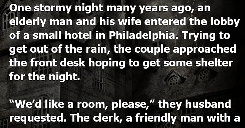 One stormy night many years ago, an elderly man and his wife entered the lobby of a small hotel in Philadelphia. Trying to get out of the rain, the couple approached the front desk hoping to get some shelter for the night.