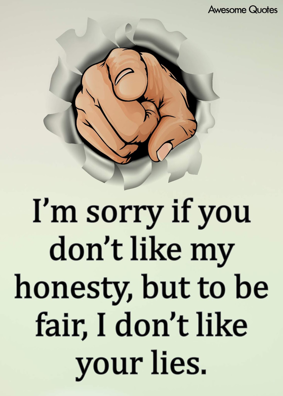 I’m sorry if you don’t like my honesty, but to be fair, I don’t like your lies.