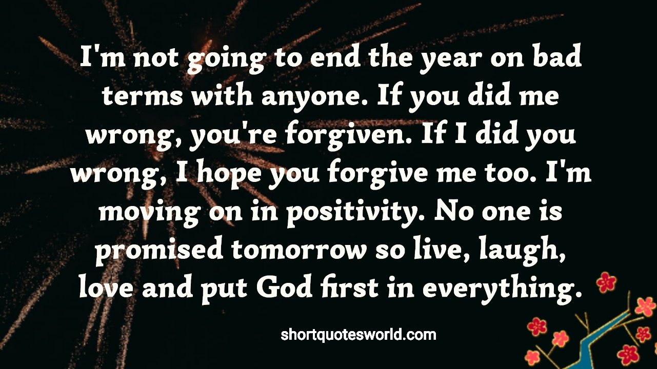 I’m not going to end the year on bad terms with anyone. If you did me wrong, you are forgiven and if I did you wrong, I hope you find a place in your heart and forgive me.