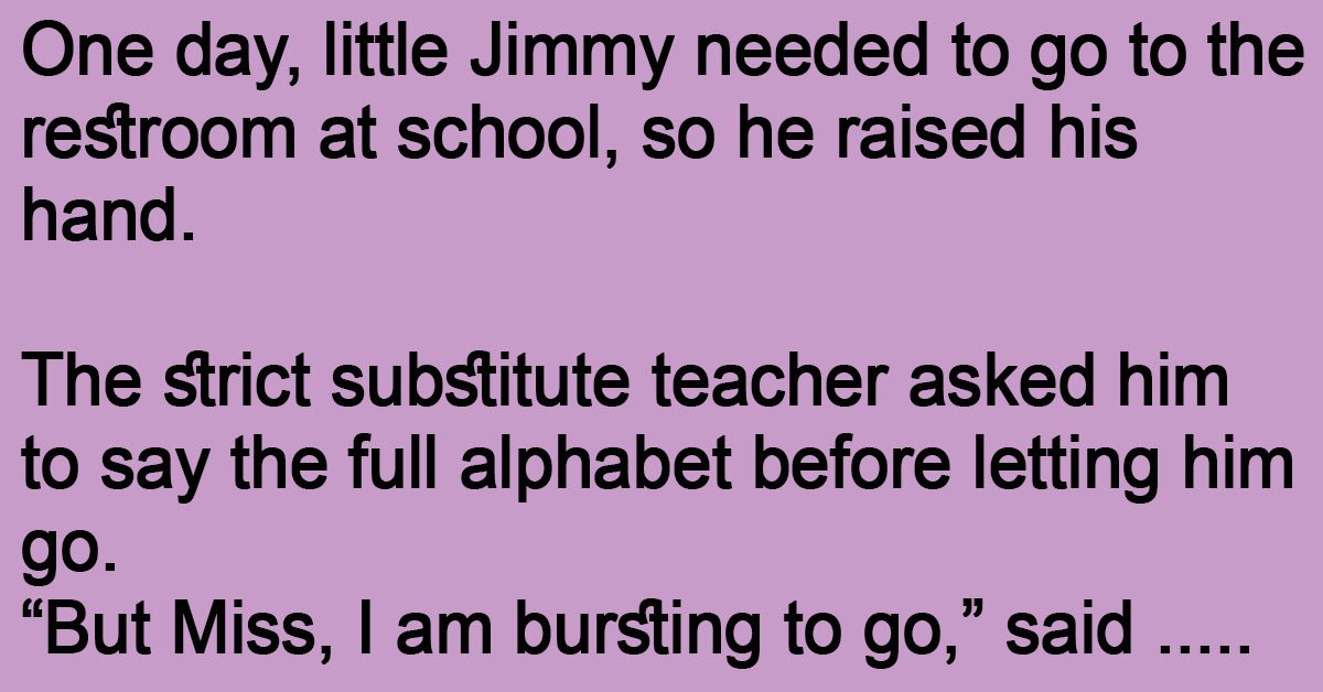 One day, little Jimmy needed to go to the restroom at school, so he raised his hand.