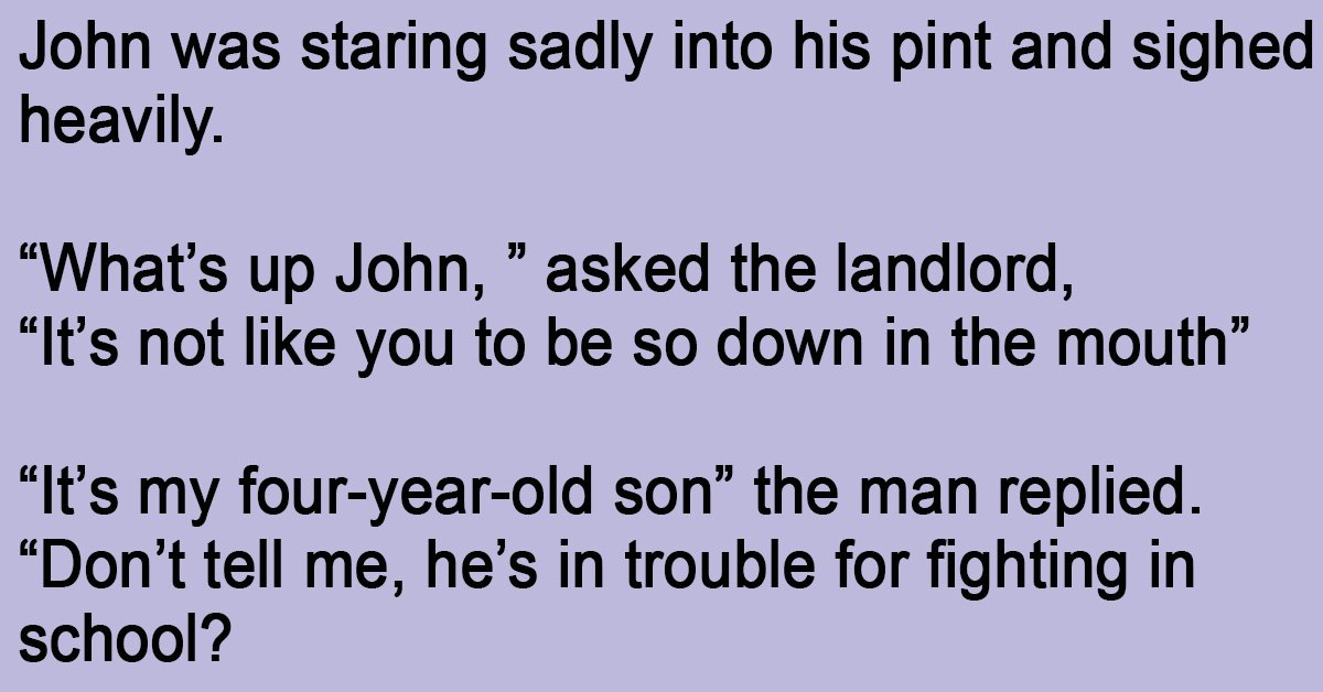 “Don’t tell me, he’s in trouble for fighting in school? – my lad’s just the same – forget about it, it happens to boys that age” said the landlord, sympathetically.