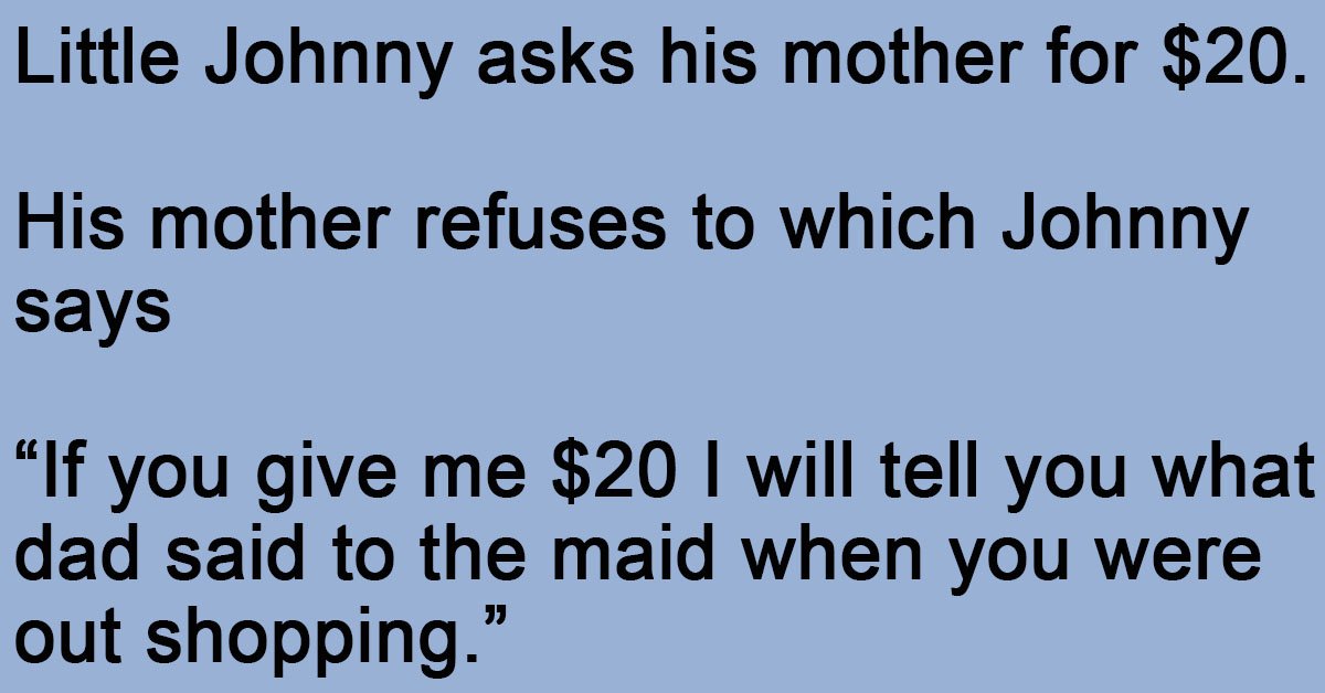 “Ok Johnny, here is 20 dollars. Now, what did your father say to the maid?”