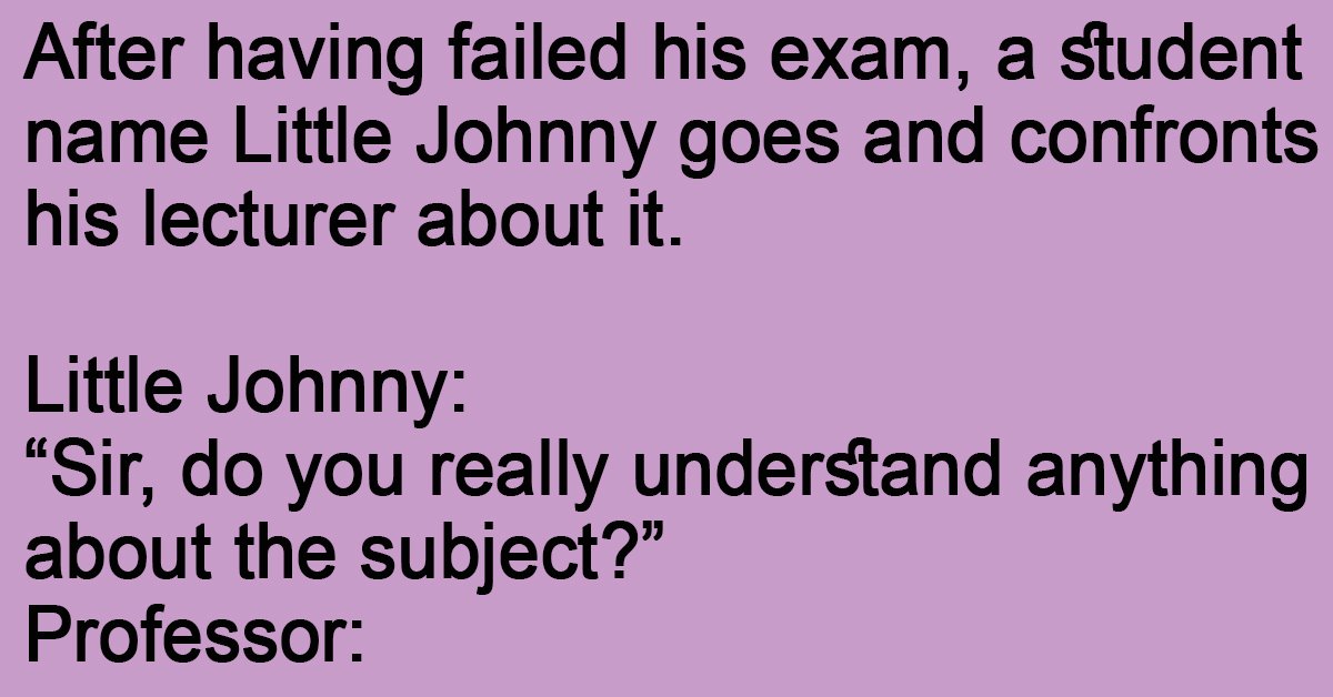 After having failed his exam, a student name Little Johnny goes and confronts his lecturer about it.