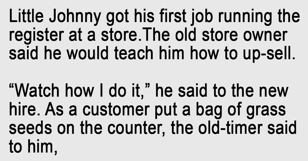As a customer put a bag of grass seeds on the counter, the old-timer said to him,