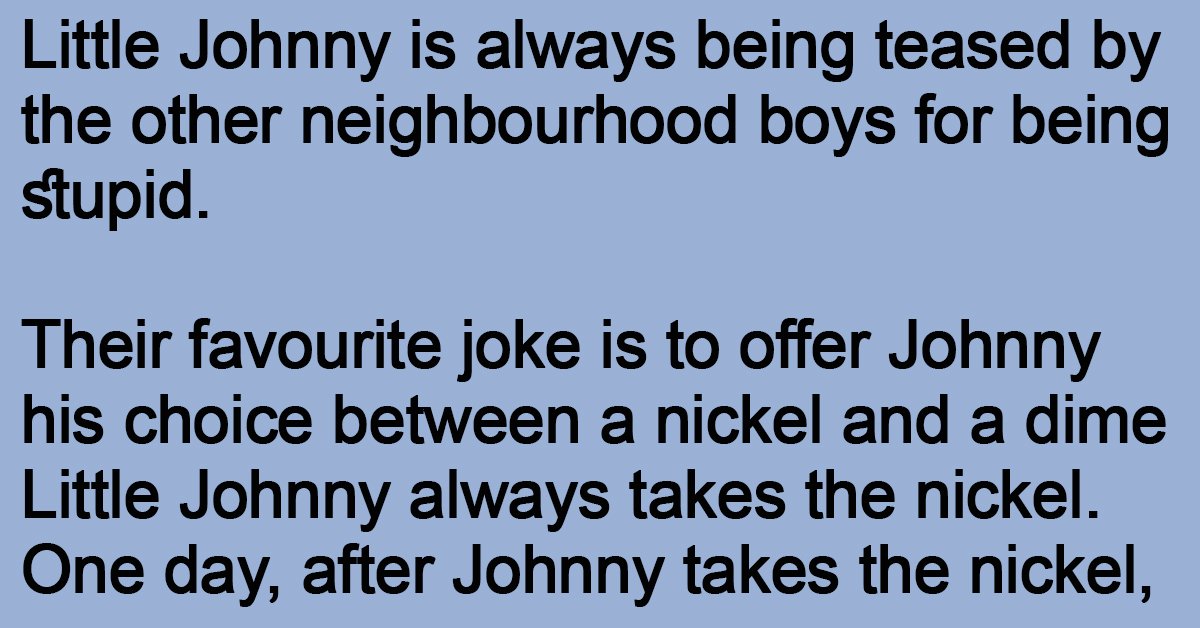 Their favourite joke is to offer Johnny his choice between a nickel and a dime Little Johnny always takes the nickel.