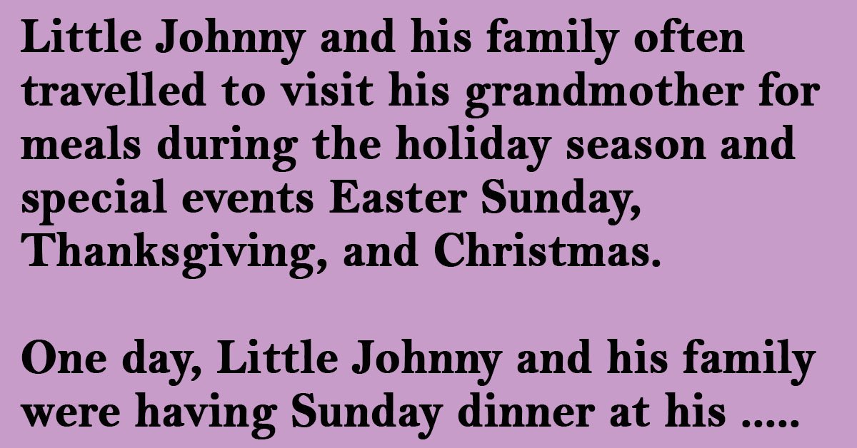 One day, Little Johnny and his family were having Sunday dinner at his Grandmother’s house.