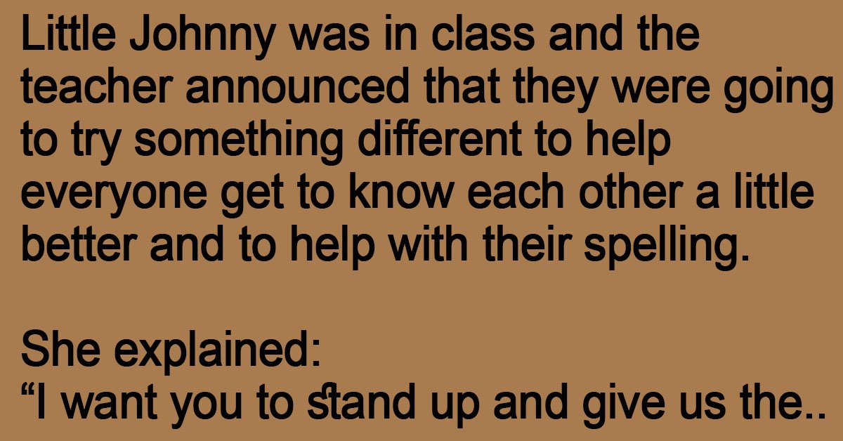 Little Johnny was in class and the teacher announced that they were going to try something different to help everyone get to know each other a little better and to help with their spelling.
