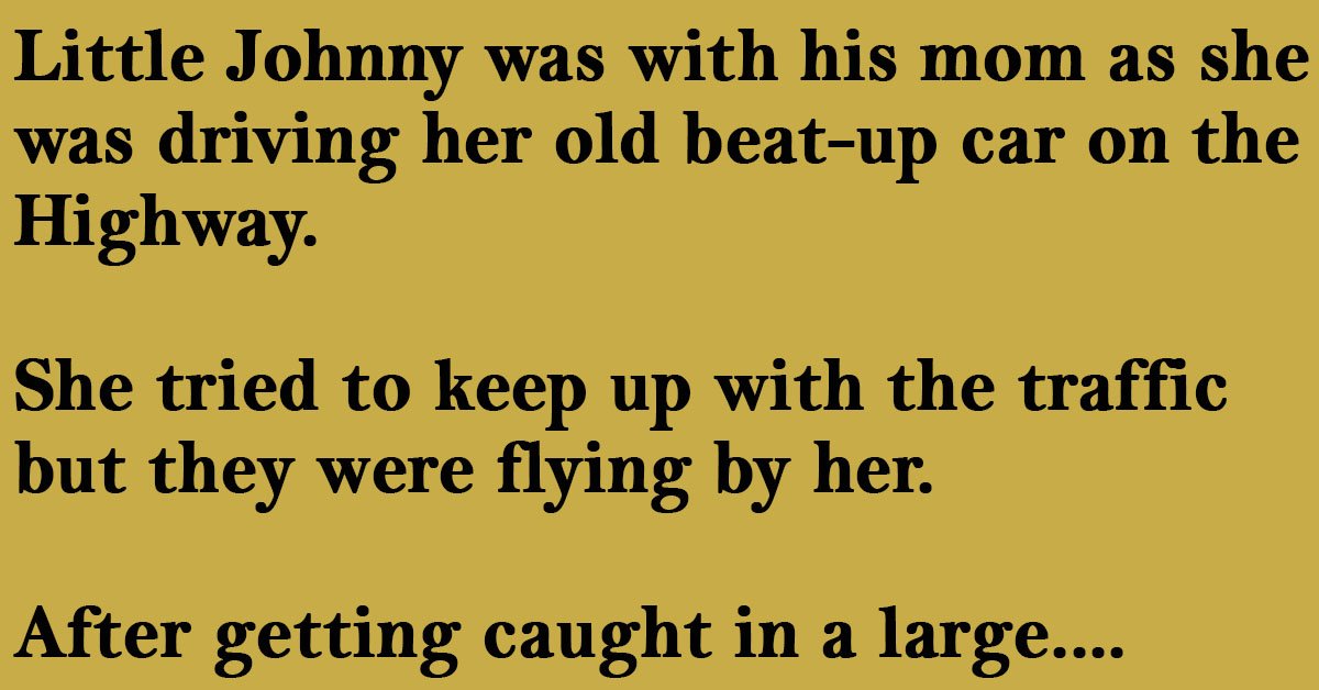 Little Johnny was with his mom as she was driving her old beat-up car on the Highway.