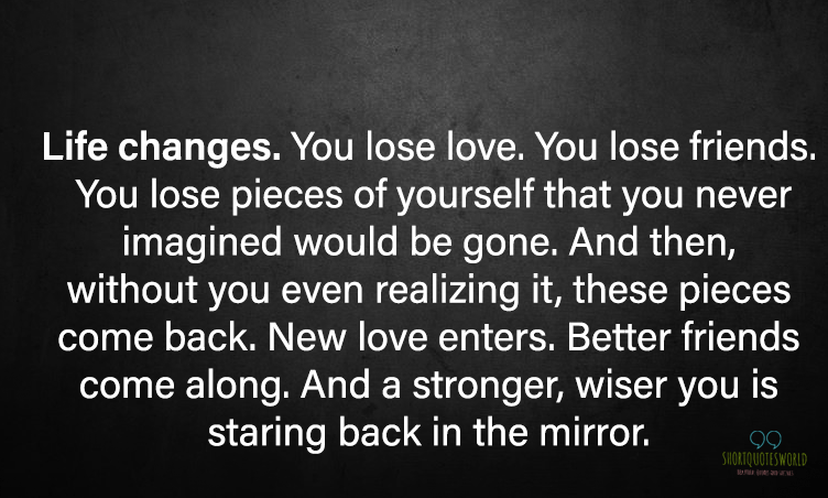 Life changes; you lose love, you lose friends, you lose pieces of yourself that you never imagined could be gone, and then without you even realizing it, these pieces come back.