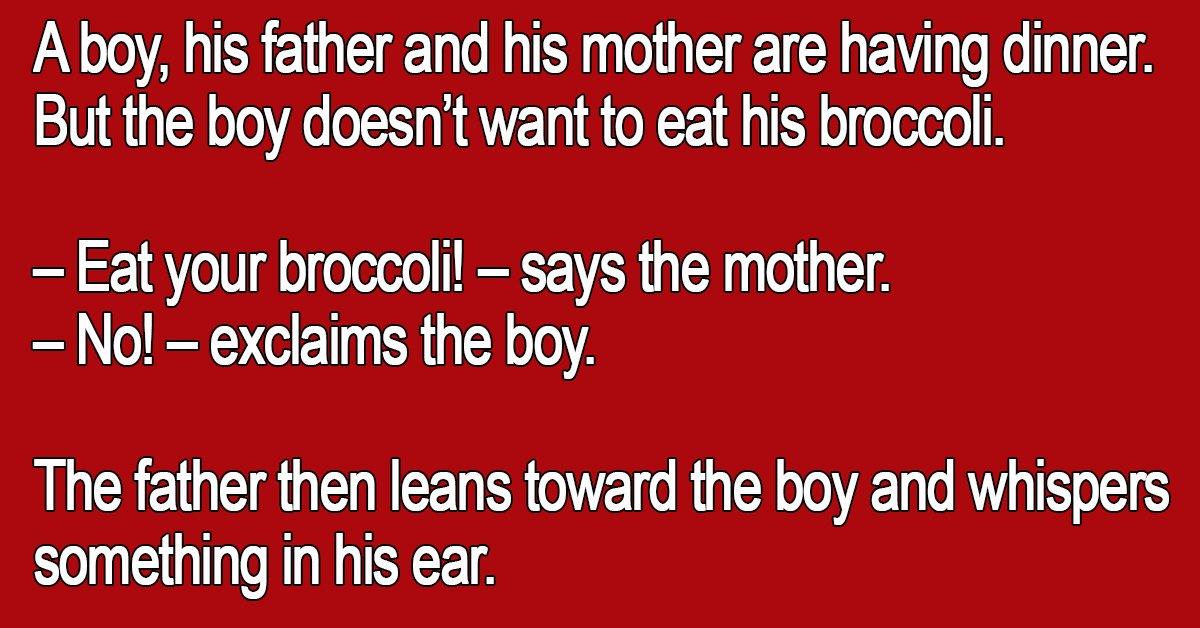 – Eat your broccoli! – says the mother.