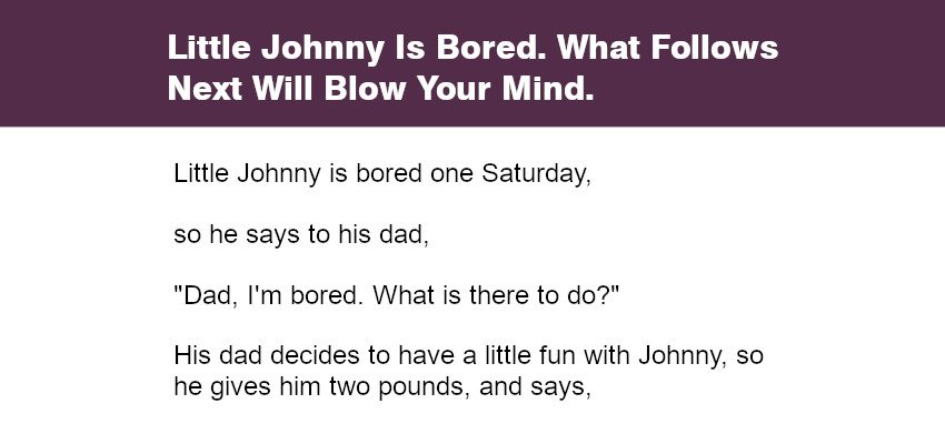 His dad decides to have a little fun with Johnny, so he gives him two pounds, and says,
