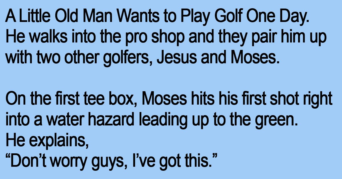 He walks into the pro shop and they pair him up with two other golfers, Jesus and Moses.