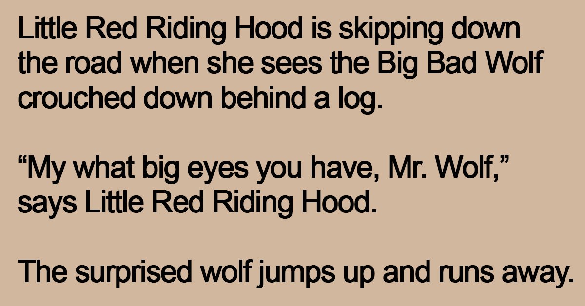 “My what big eyes you have, Mr. Wolf,” says Little Red Riding Hood.