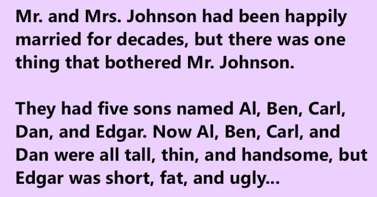 They had five sons named Al, Ben, Carl, Dan, and Edgar. Now Al, Ben, Carl, and Dan were all tall, thin, and handsome, but Edgar was short, fat, and ugly.