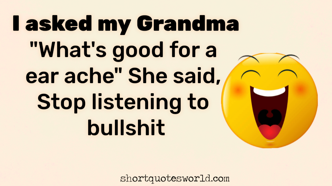 I asked my grandma ‘’what’s good for an earache’’ she said ‘’stop listening to bullshit’’.