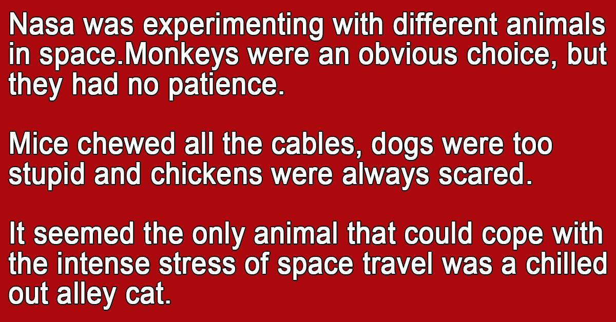 It seemed the only animal that could cope with the intense stress of space travel was a chilled out alley cat.