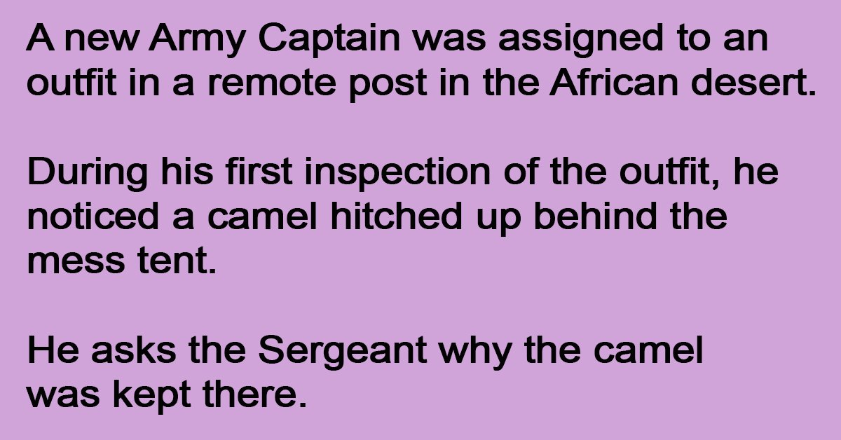 He asks the Sergeant why the camel was kept there. The nervous sergeant said,