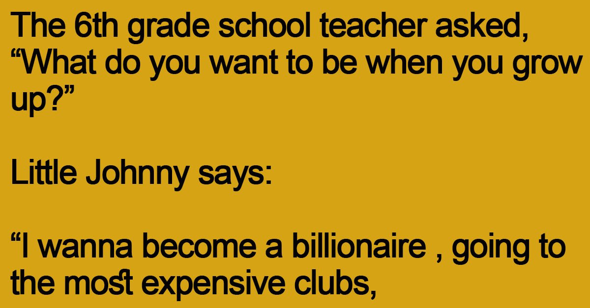 The 6th grade school teacher asked, “What do you want to be when you grow up?” Little Johnny says: “I wanna become a billionaire , going to the most expensive … …