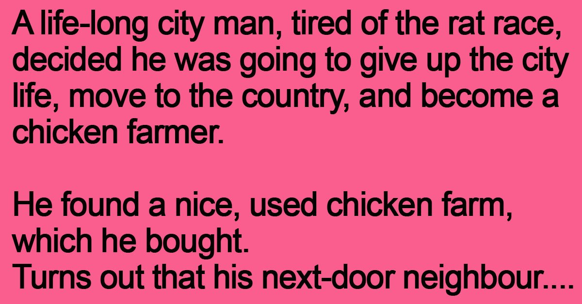 A life-long city man, tired of the rat race, decided he was going to give up the city life, move to the country, and become a chicken farmer. He found … …