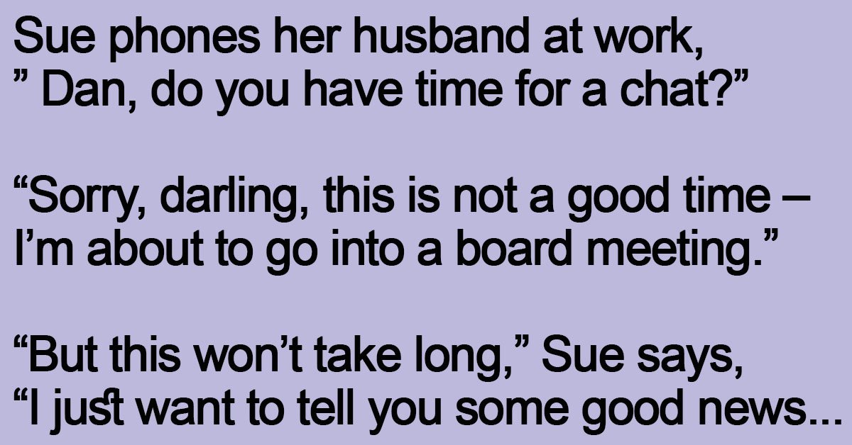 Sue phones her husband at work, ” Dan, do you have time for a chat?” “Sorry, darling, this is not a good time – I’m about to go into a … …