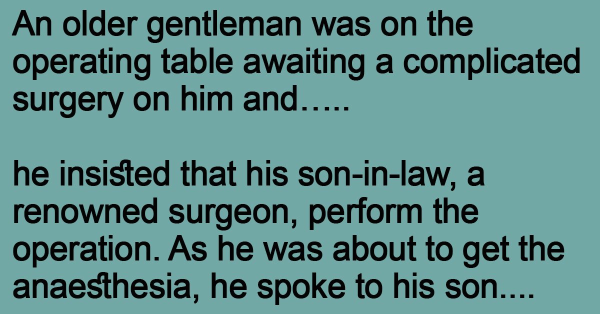 An older gentleman was on the operating table awaiting a complicated surgery on him and….. he insisted that his son-in-law, a renowned surgeon, perform the operation. As he was about … …