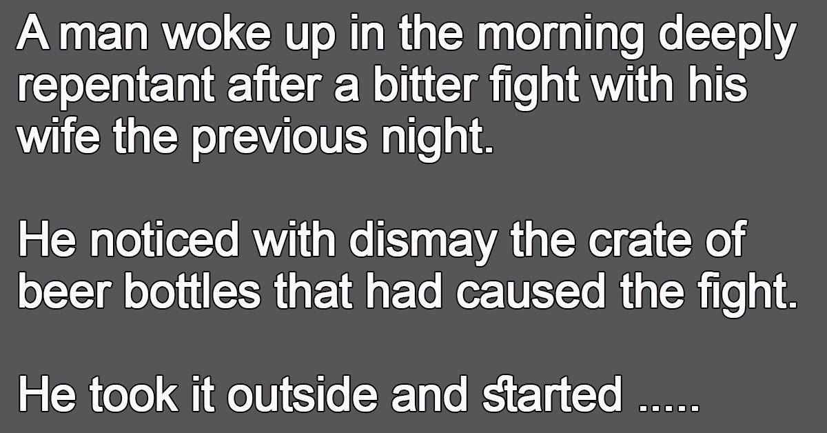 A man woke up in the morning deeply repentant after a bitter fight with his wife the previous night. He noticed with dismay the crate of beer bottles that had … …