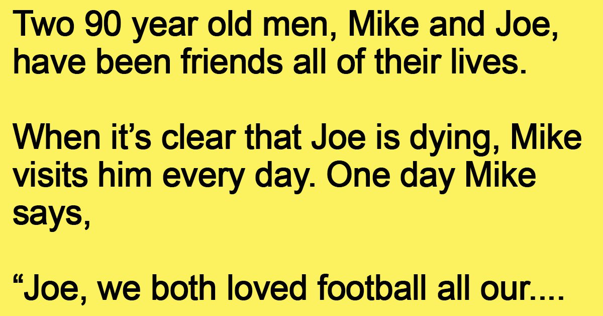 Two 90 year old men, Mike and Joe, have been friends all of their lives. When it’s clear that Joe is dying, Mike visits him every day. One day Mike … …