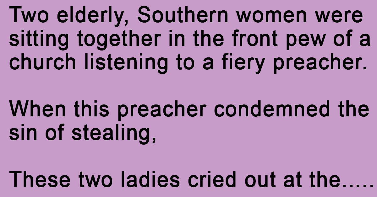 Two elderly, Southern women were sitting together in the front pew of a church listening to a fiery preacher. When this preacher condemned the sin of stealing, These two ladies … …