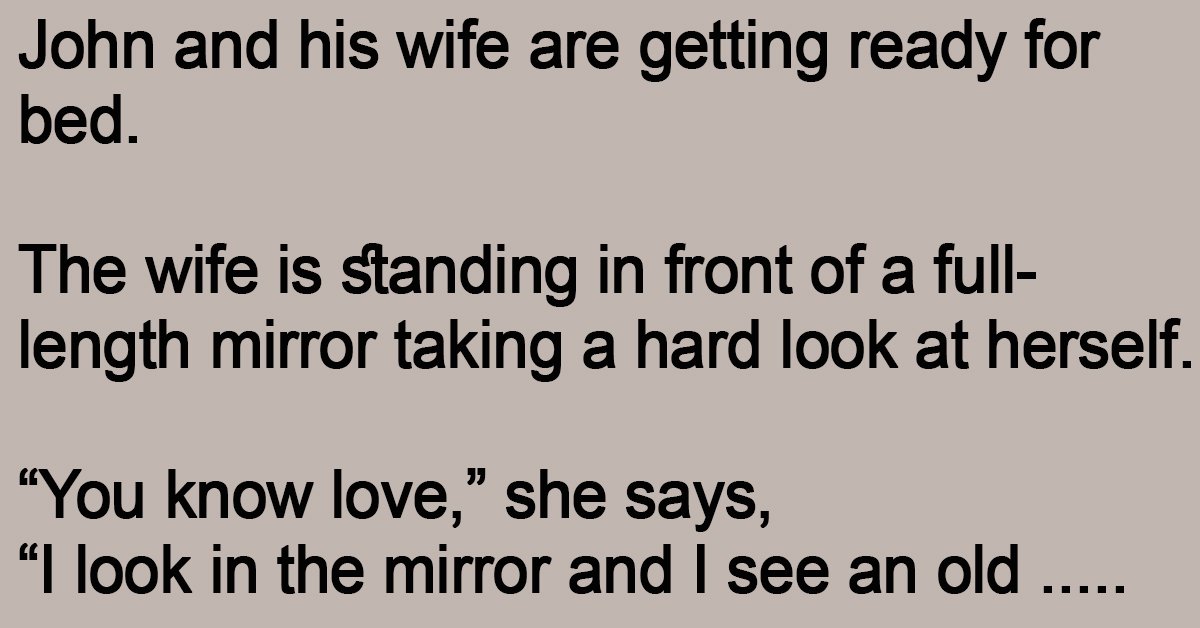 John and his wife are getting ready for bed. The wife is standing in front of a full-length mirror taking a hard look at herself. “You know love,” she … …