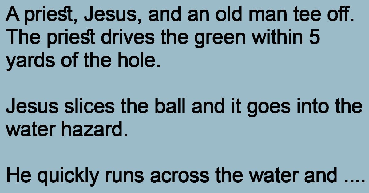 A priest, Jesus, and an old man tee off. The priest drives the green within 5 yards of the hole. Jesus slices the ball and it goes into the … …