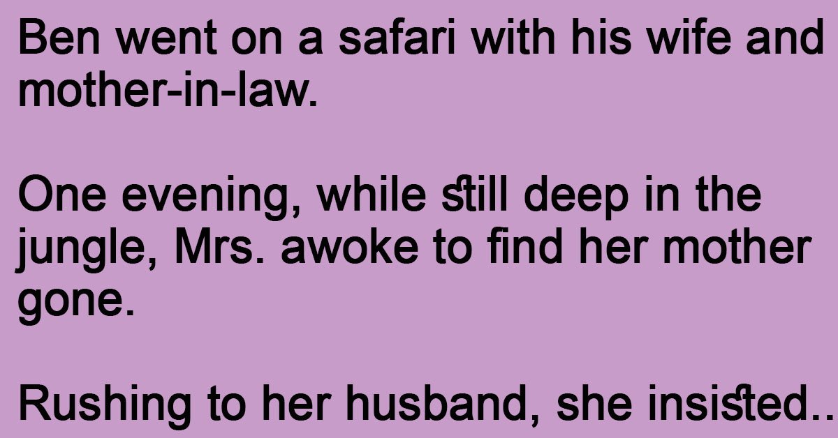 Ben went on a safari with his wife and mother-in-law. One evening, while still deep in the jungle, Mrs. awoke to find her mother gone. Rushing to her husband, she … …