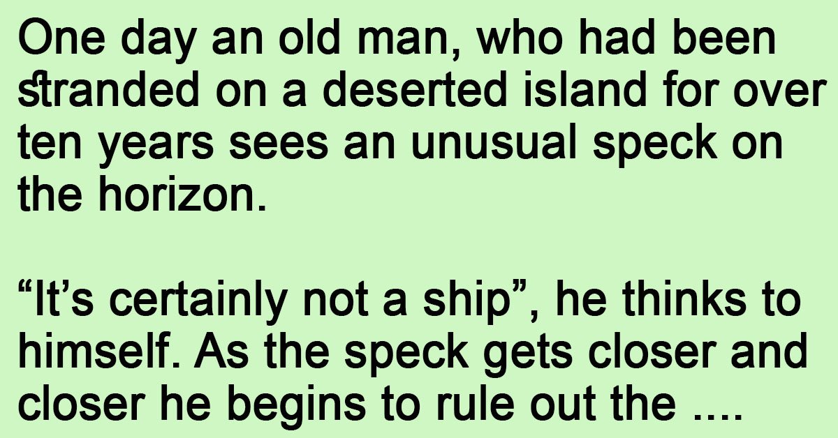 One day an old man, who had been stranded on a deserted island for over ten years sees an unusual speck on the horizon. “It’s certainly not a ship”, he … …