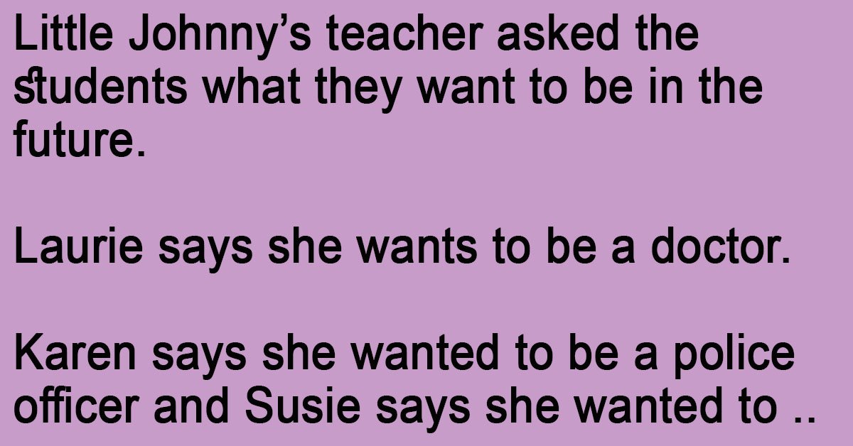 Little Johnny’s teacher asked the students what they want to be in the future. Laurie says she wants to be a doctor. Karen says she wanted to be a police … …