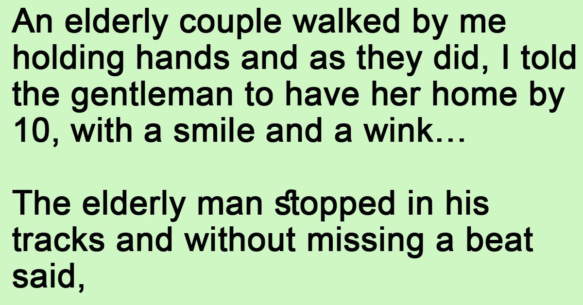 An elderly couple walked by me holding hands and as they did, I told the gentleman to have her home by 10, with a smile and a wink… The elderly … …