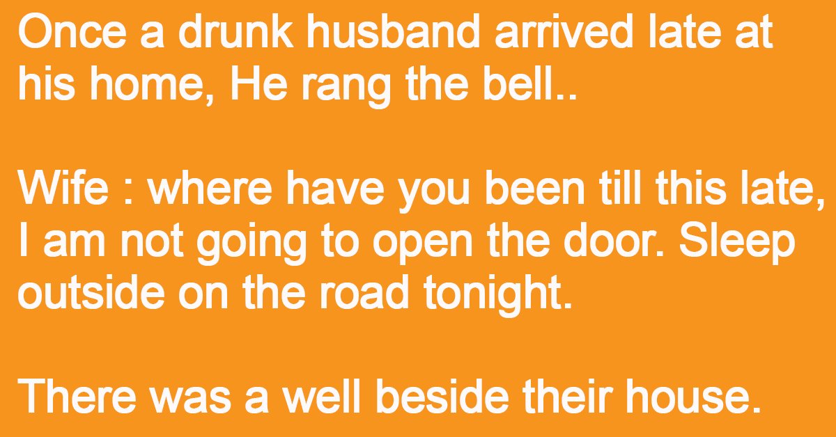 Once a drunk husband arrived late at his home, He rang the bell.. Wife : where have you been till this late, I am not going to open the … …