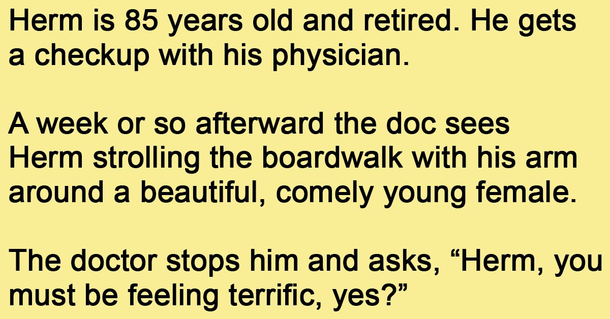 Herm is 85 years old and retired. He gets a checkup with his physician. A week or so afterward the doc sees Herm strolling the boardwalk with his arm around … …