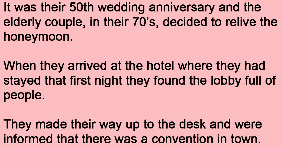 It was their 50th wedding anniversary and the elderly couple, in their 70’s, decided to relive the honeymoon. When they arrived at the hotel where they had stayed that first … …
