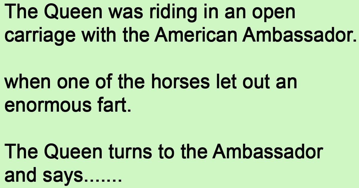 The Queen was riding in an open carriage with the American Ambassador. when one of the horses let out an enormous fart. The Queen turns to the Ambassador and says … …