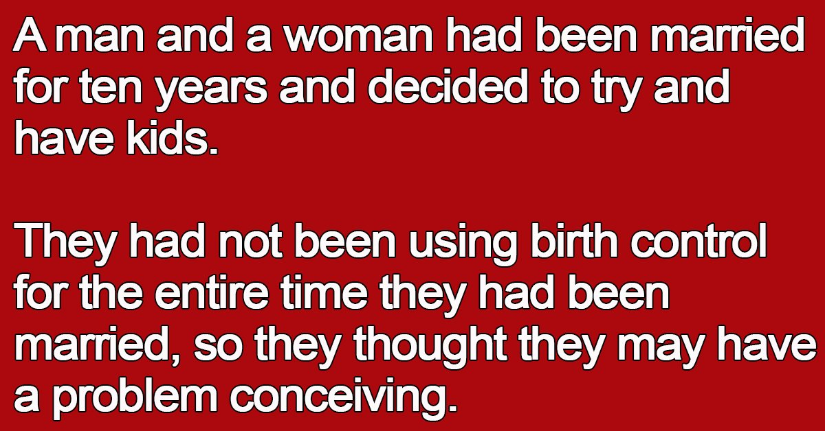 A man and a woman had been married for ten years and decided to try and have kids. They had not been using birth control for the entire time … …