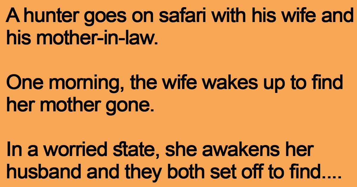 A hunter goes on safari with his wife and his mother-in-law. One morning, the wife wakes up to find her mother gone. In a worried state, she awakens her … …