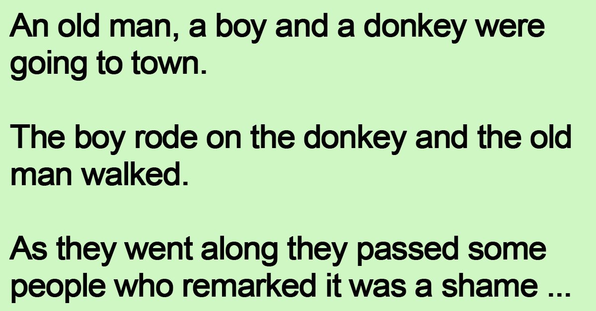 An old man, a boy and a donkey were going to town. The boy rode on the donkey and the old man walked. As they went along they passed … …