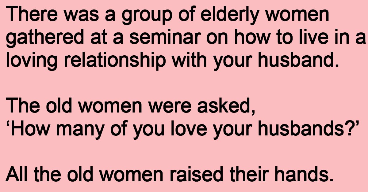 There was a group of elderly women gathered at a seminar on how to live in a loving relationship with your husband. The old women were asked, ‘How many … …