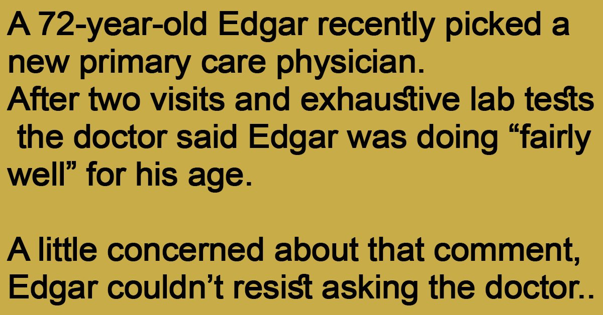 A 72-year-old Edgar recently picked a new primary care physician. After two visits and exhaustive lab tests, the doctor said Edgar was doing “fairly well” for his age. A … …