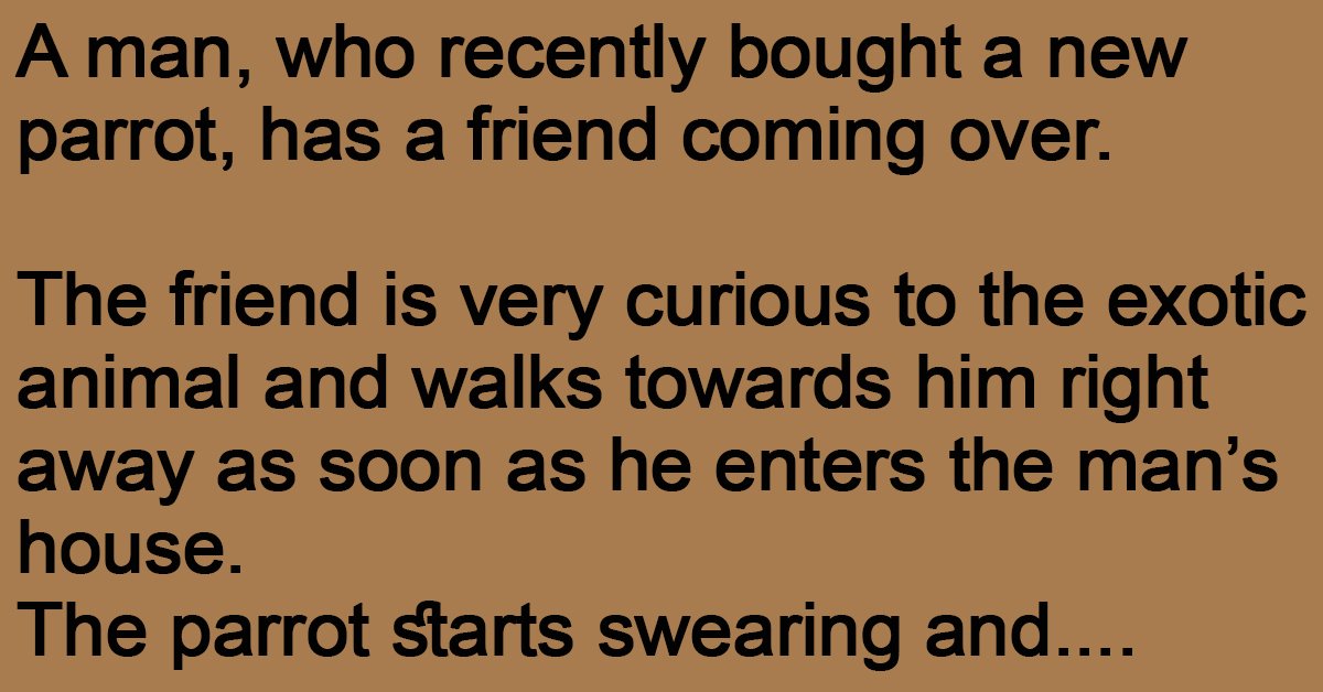 A man, who recently bought a new parrot, has a friend coming over. The friend is very curious to the exotic animal and walks towards him right away as … …