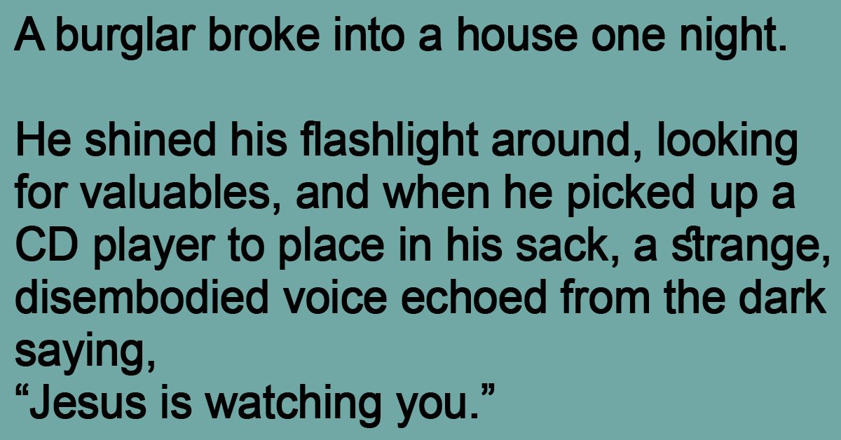 A burglar broke into a house one night. He shined his flashlight around, looking for valuables, and when he picked up a CD player to place in his sack, … …