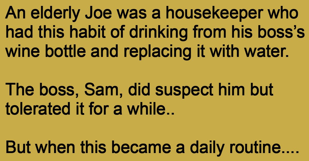 An elderly Joe was a housekeeper who had this habit of drinking from his boss’s wine bottle and replacing it with water. The boss, Sam, did suspect him but … …