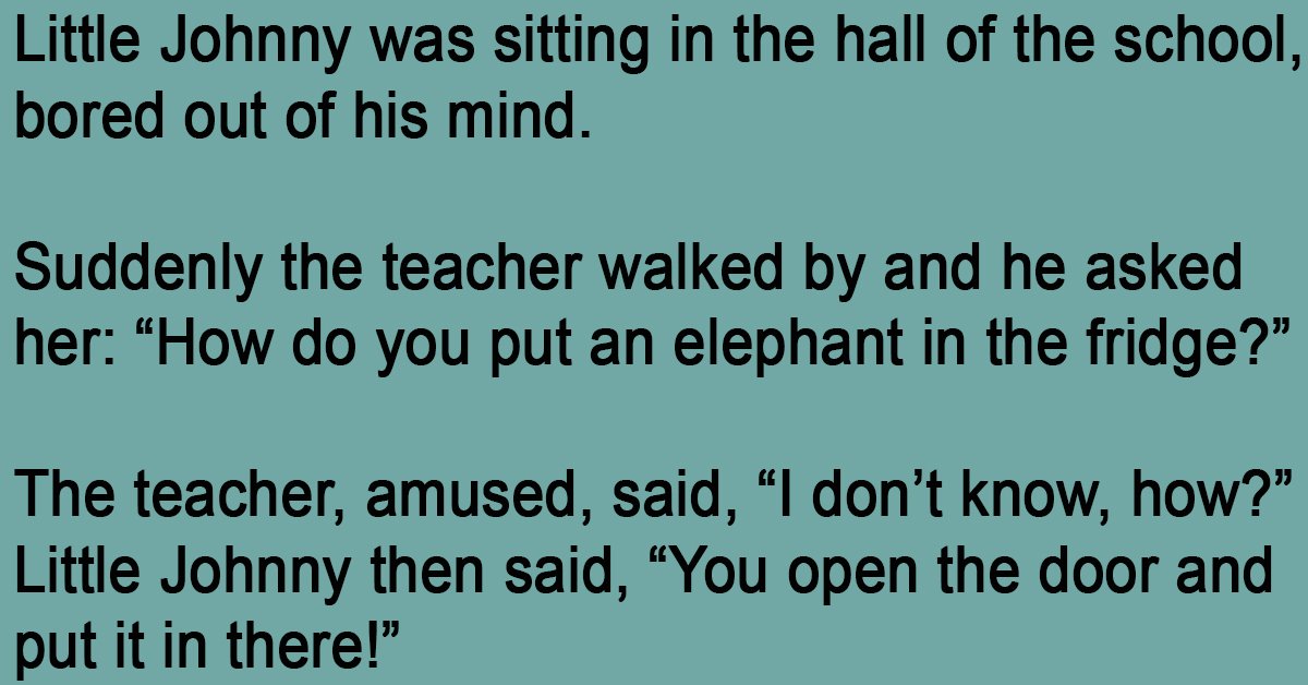 Little Johnny was sitting in the hall of the school, bored out of his mind. Suddenly the teacher walked by and he asked her: “How do you put an elephant … …
