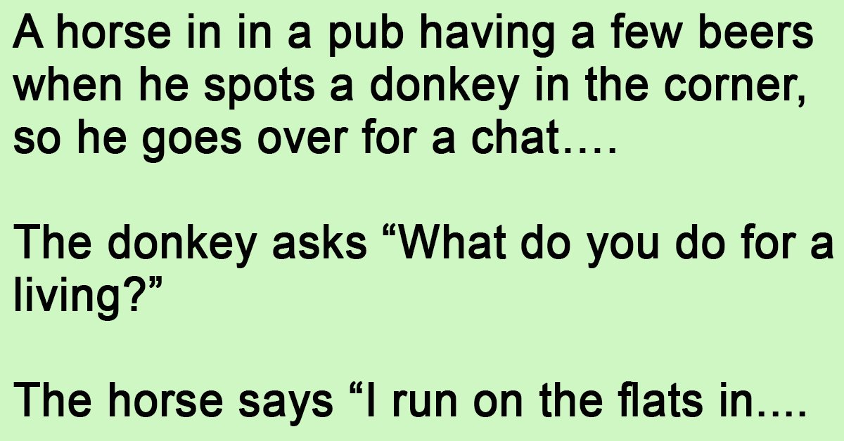 A horse in in a pub having a few beers when he spots a donkey in the corner, so he goes over for a chat…. The donkey asks “What … …