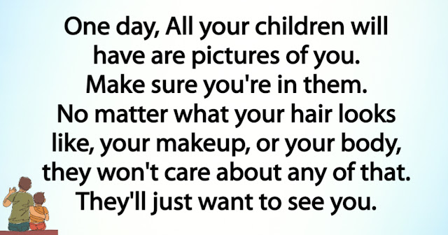 One day, All your children will have are pictures of you. Make sure you’re in them. No matter what your hair looks like, your makeup, or your body, they won’t care about any of that. They’ll just want to see you.