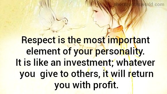 Respect is the most important element of your personality. It is like an investment; whatever you give to others, it will return you with profit.